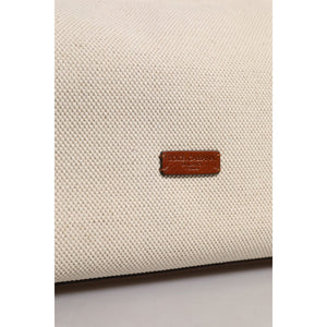 Dolce & Gabbana Beige Brown Cotton Leather Duffle Shoulder Bag