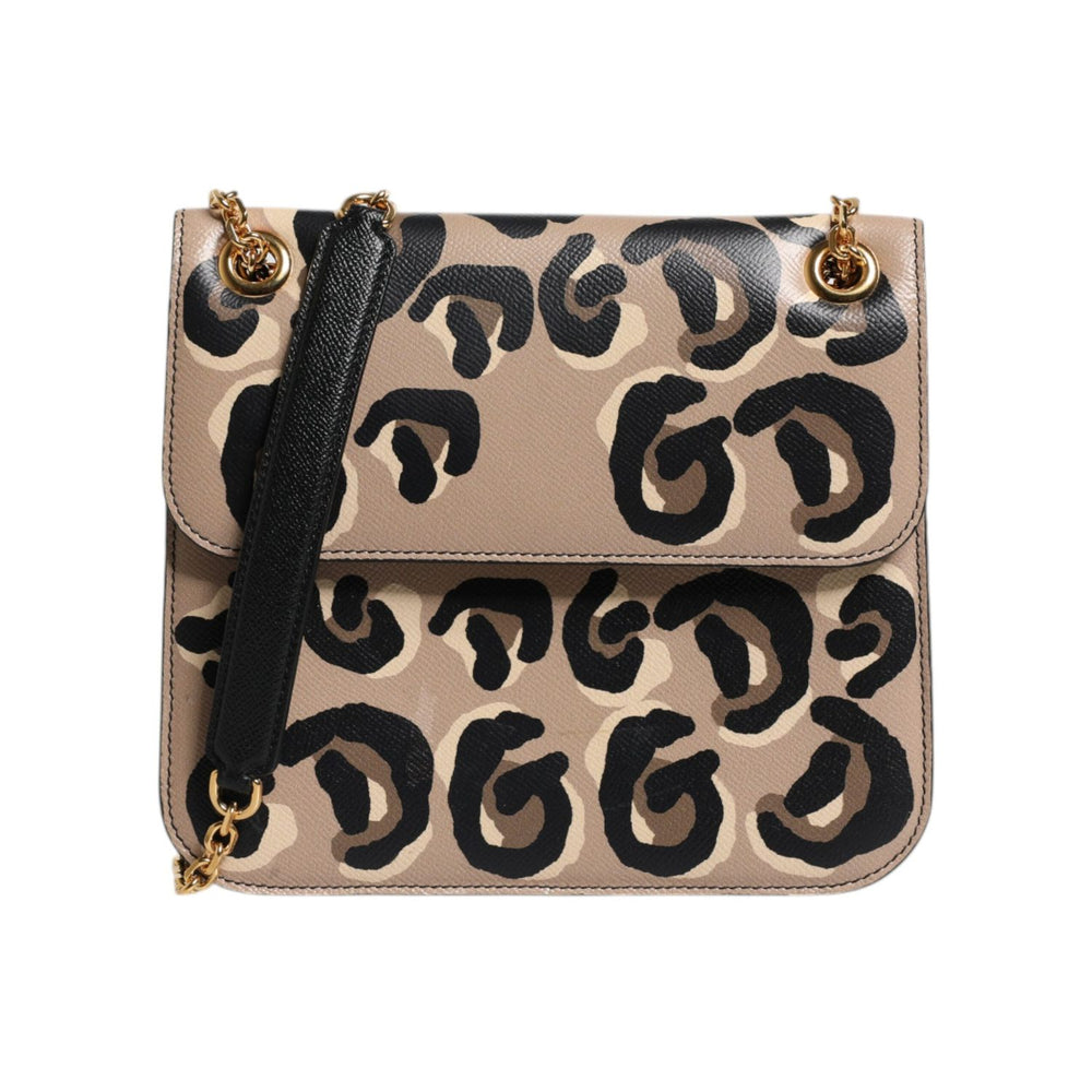 Dolce & Gabbana Beige DG Leopard Pattern Leather Crossbody Bag