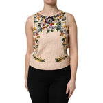 Dolce & Gabbana Beige Floral Embroidery Sleeveless Tank Top