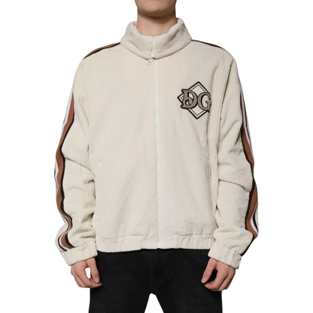 Dolce & Gabbana Beige Logo Applique Cotton Corduroy Full Zip Jacket