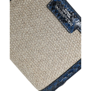 Gorgeous preowned, 100% Authentic Dolce & Gabbana crossbody bag. This compact luxury purse is crafted in beige raffia with genuine blue python leather trim, accented by silver-tone hardware. A versatile mini bag perfect for carrying essentials in style.