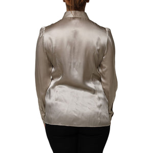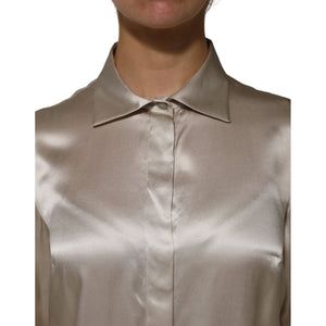Dolce & Gabbana Beige Satin Silk Collared Long Sleeves Top