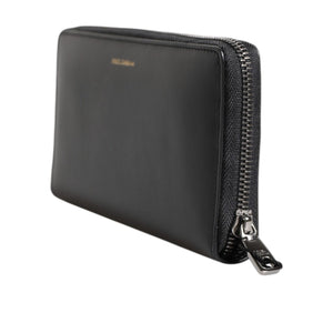 Dolce & Gabbana Black Blue Exotic Leather Embossed Continental Wallet