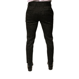 Dolce & Gabbana Black Brocade Polyester Skinny Men Dress Pants