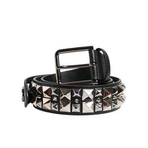 Dolce & Gabbana Black Calf Leather Studded Silver Buckle Belt