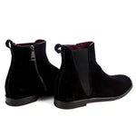Make a powerful statement with these Dolce & Gabbana black suede calfskin ankle boots. Designed to command attention and exude sophistication, each step reveals impeccable Italian craftsmanship. The convenient zipper pairs with an elastic band for a snug fit, while the daring red leather interior adds a hidden splash of color. A true staple for the modern gentleman’s wardrobe, these boots complete any bold ensemble with a sleek and stylish edge.