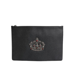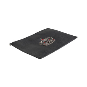 Dolce & Gabbana Black Calfskin Crown Embellished Clutch Pouch Bag