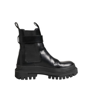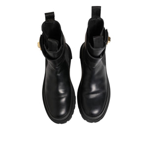 Dolce & Gabbana Black Calfskin DG Logo Strap Ankle Boots Shoes