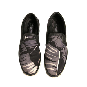 Dolce & Gabbana Black Canvas Tropical Print Slip On Shoes