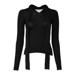 Dolce & Gabbana Black Cashmere Ascot Collar Long Sleeve Top
