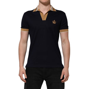 Dolce & Gabbana Black Cashmere Crown Logo Men Polo T-shirt