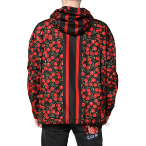 Dolce & Gabbana Black Cherry Print Hooded Windbreaker Jacket