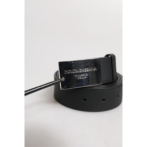 Dolce & Gabbana Black Classic Silver Metal Logo Buckle Belt