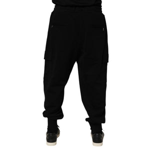 Dolce & Gabbana Black Cotton Blend Cargo Joggers Drawstring Pants