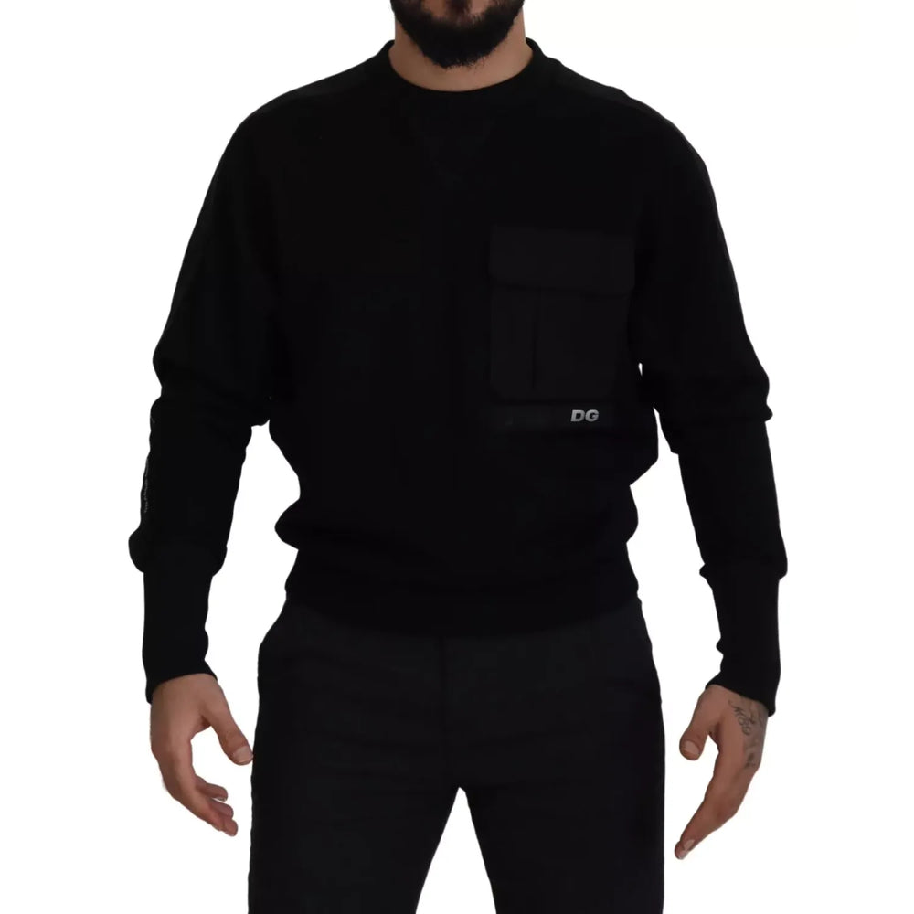 Dolce & Gabbana Black Cotton Crewneck Sweatshirt Sweater
