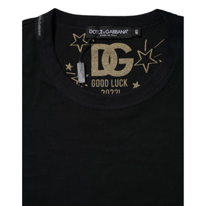 Dolce & Gabbana Black Cotton DG Print Short Sleeve Top T-shirt