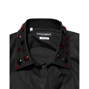 Dolce & Gabbana Black Cotton Embellished Collar Men’s Shirt