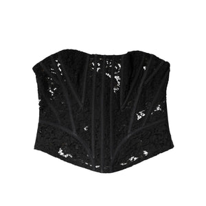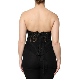 Dolce & Gabbana Black Cotton Floral Lace Corset Bustier Top
