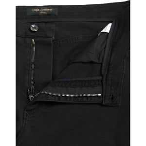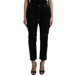 Dolce & Gabbana Black Cotton High Waist Tattered Denim Jeans
