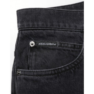 Dolce & Gabbana Black Cotton Logo Men Mid Waist Denim Jeans
