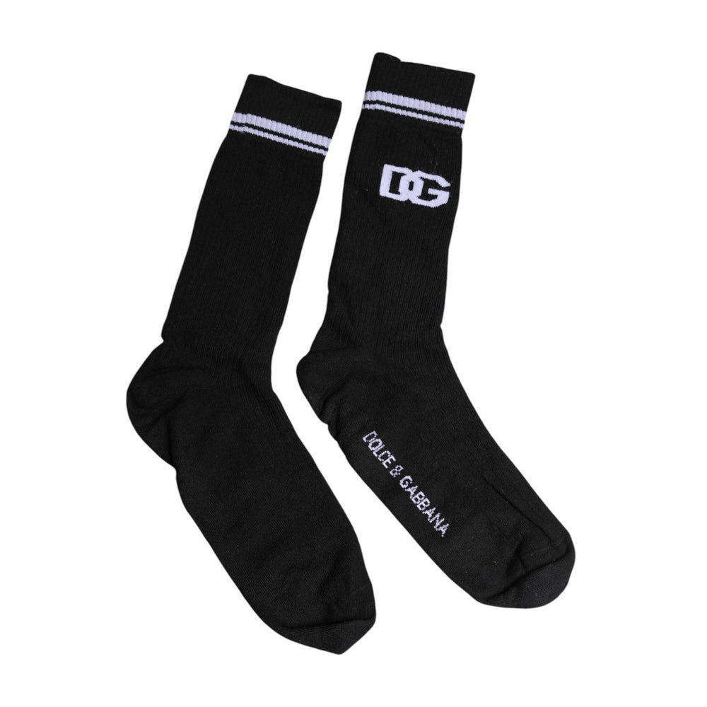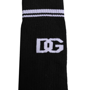 Dolce & Gabbana Black Cotton Logo Mid Calf Men Socks