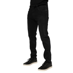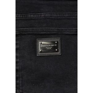 Dolce & Gabbana Black Cotton Logo Plaque Denim Jeans