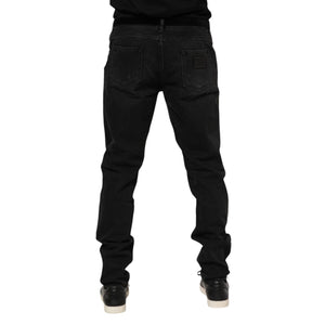 Dolce & Gabbana Black Cotton Logo Plaque Skinny Denim Jeans