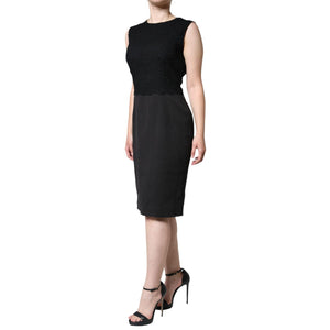 Dolce & Gabbana Black Cotton Sheath Knee Length Dress