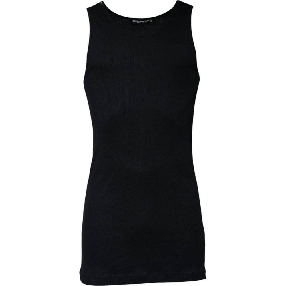 Dolce & Gabbana Black Cotton Sleeveless Round Neck Tank T-shirt