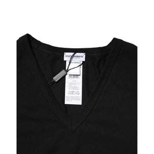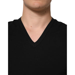 Dolce & Gabbana Black Cotton Slim Fit Men V-Neck Shirt T-shirt