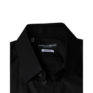 Dolce & Gabbana Black Cotton Stretch Dress GOLD Formal Shirt