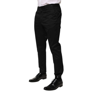 Dolce & Gabbana Black Cotton Tapered Men Formal Trousers Pants