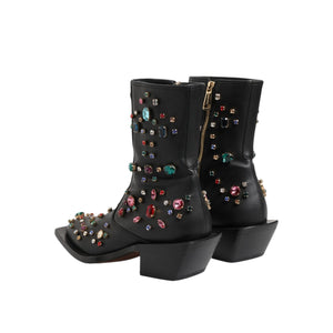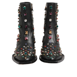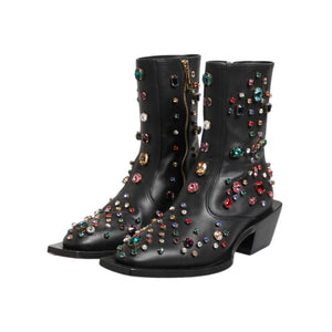 Dolce & Gabbana Black Crystal Cowboy Leather Men Boots Shoes