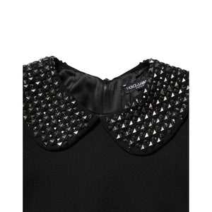 Dolce & Gabbana Black Crystal Embellished Collared Mini Dress