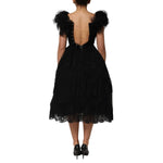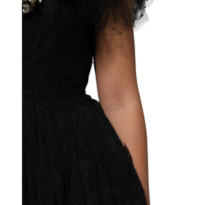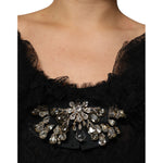 Dolce & Gabbana Black Crystal Embellished Midi A-line Dress
