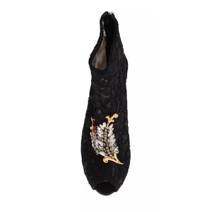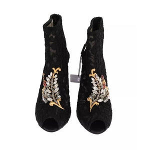 Dolce & Gabbana Black Crystal Lace Booties Stilettos Shoes