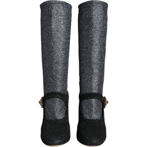 Dolce & Gabbana Black Crystal Mary Janes Booties Shoes