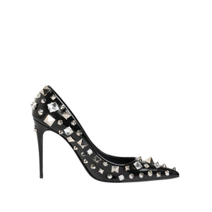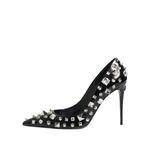 Dolce & Gabbana Black Crystals Studs Stiletto Pumps Shoes