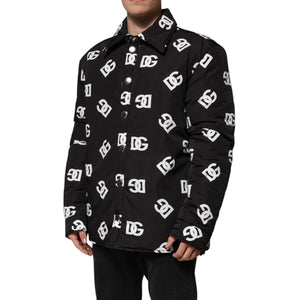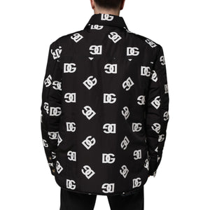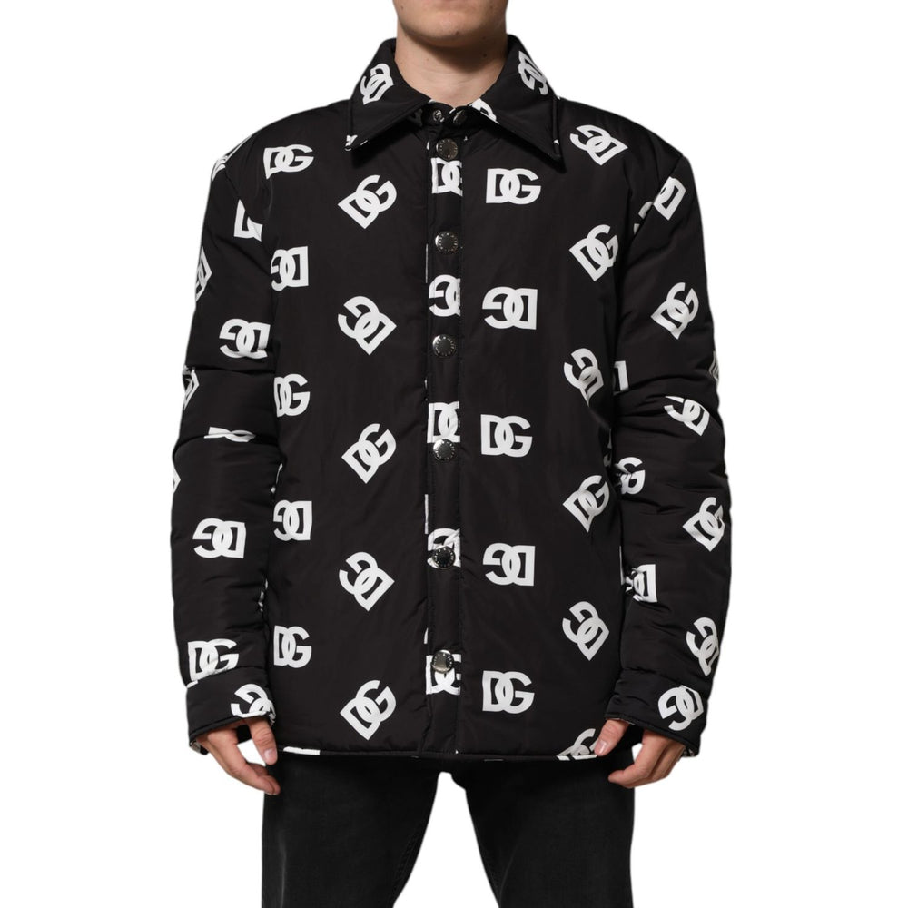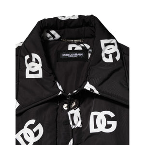 Gorgeous brand new, 100% Authentic Dolce & Gabbana jacket features an all-over white DG logo print on a black background, with a collar and button-front closure.