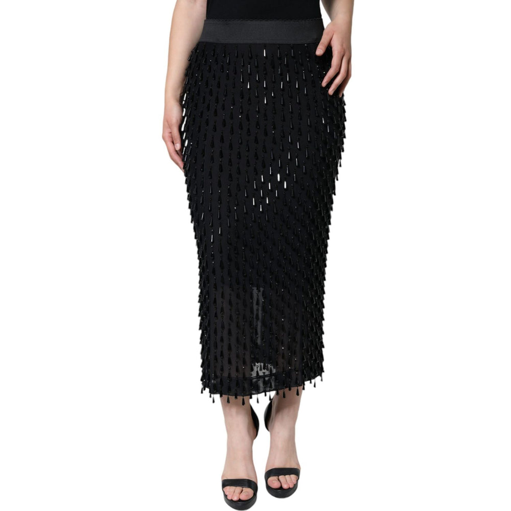 Dolce & Gabbana Black Embellished Pencil Cut Midi Skirt