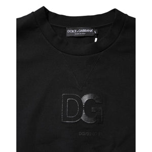 Dolce & Gabbana Black Embossed Logo Cotton Crew Neck Sweater