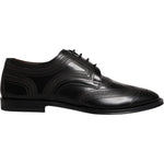 Dolce & Gabbana Black Embroidered Classic Leather Derby Dress Shoes