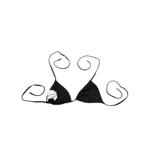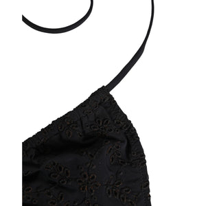 Gorgeous brand new, 100% Authentic Dolce & Gabbana black triangle bikini top, crafted with delicate embroidered details for a chic and stylish look. Made in Italy, this piece features adjustable tie straps for a customized fit, perfect for a sophisticated beach or poolside style.
