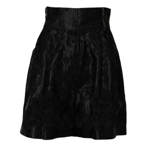 Dolce & Gabbana Black Floral Embroidery Silk High Waist Shorts