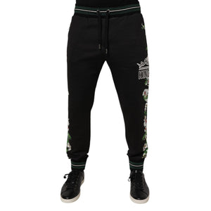 Dolce & Gabbana Black Floral King Men Jogger Sweatpants Pants
