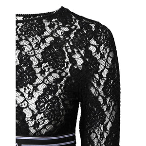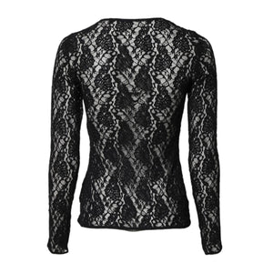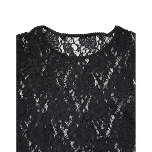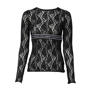 Dolce & Gabbana Black Floral Lace Long Sleeves Pullover Top