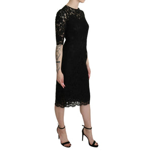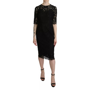 Dolce & Gabbana Black Floral Lace Sheath Knee Length Dress