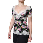 Dolce & Gabbana Black Floral Lace Short Sleeves Blouse Top