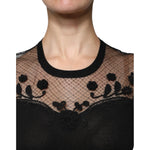 Dolce & Gabbana Black Floral Lace Short Sleeves Blouse Top