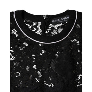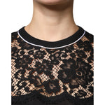 Dolce & Gabbana Black Floral Lace Silk Pullover Blouse Top
